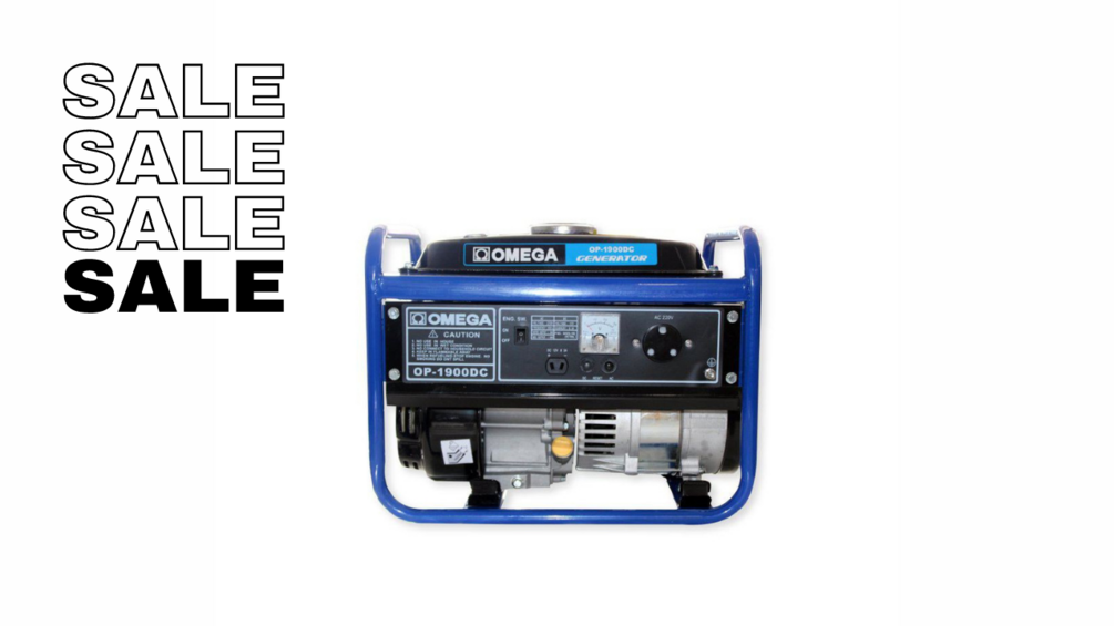 Omega OP-1900DC, with forced air cooling engine at 1.3Kw. This generator has a single-phase, brushless, capacitor type. The OP-1900DC generator can auto idle to run longer and save fuel when less power is required.